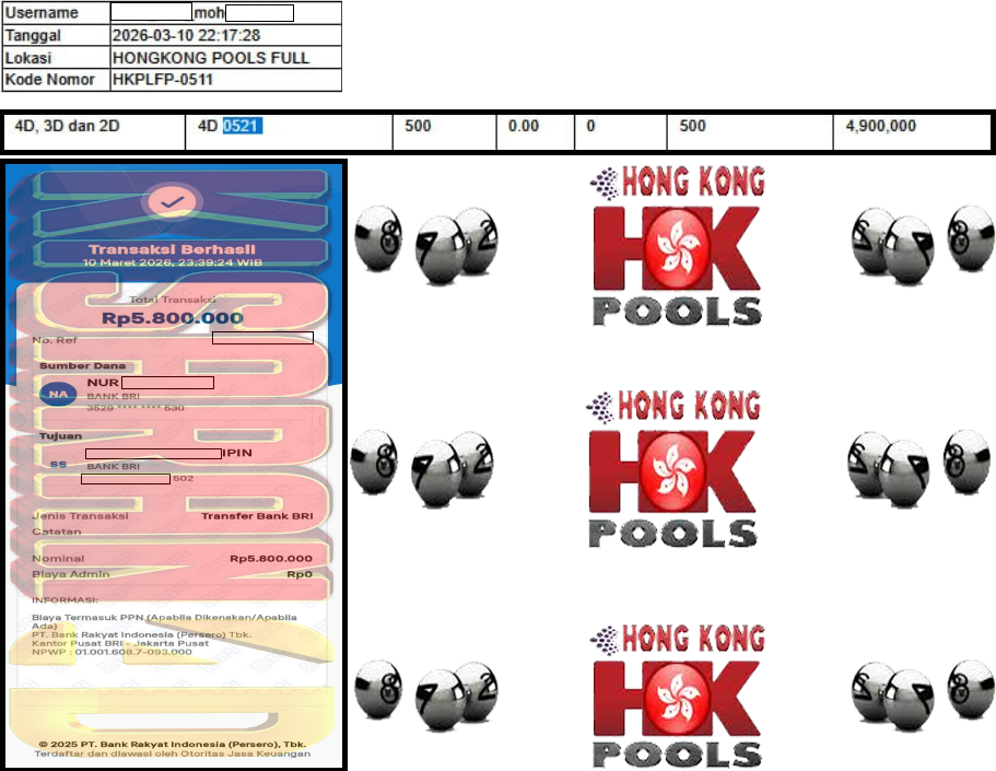 JACKPOT : PASARAN HONGKONG POOLS ”0521”