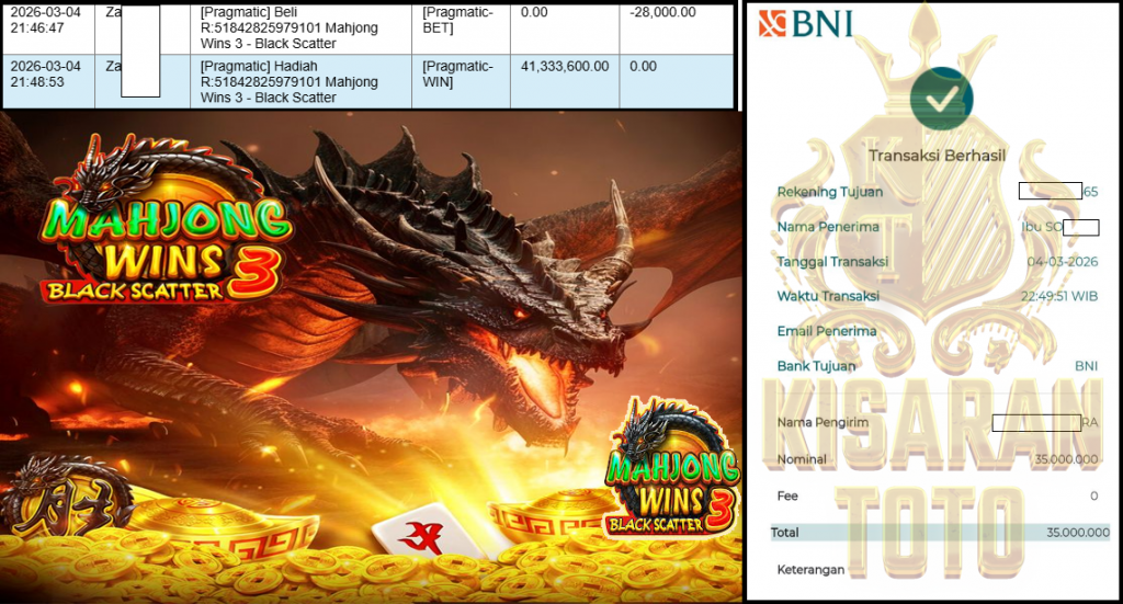 KISARANTOTO JACKPOT PRAGMATIC Gaming ”Mahjong Wins 3 – Black Scatter” ‌‌‌‌‌‌‌‏Rp 35,000,000,- LUNAS