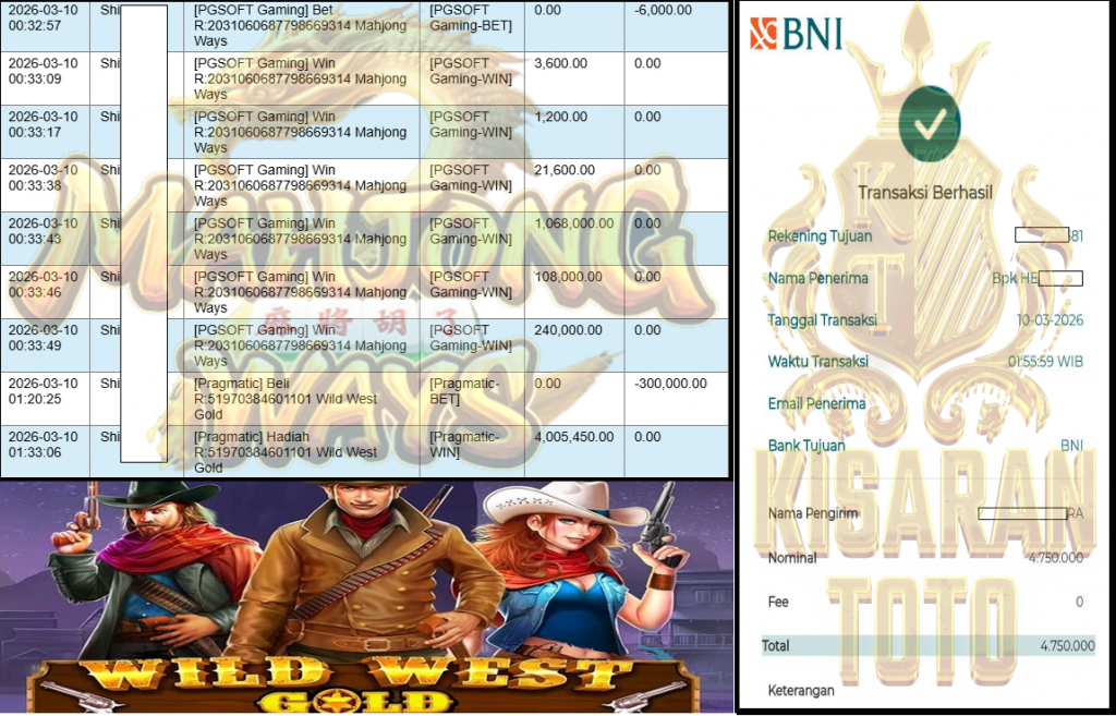 KISARANTOTO JACKPOT PRAGMATIC Gaming ” Wild West Gold” ‌‌‌‌‌‌‌‏Rp 4,750,000,- LUNAS